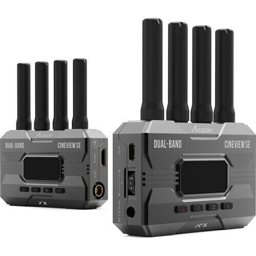 Accsoon'un en yeni nesil kablosuz video sistemi olan **CineView SE**, hem aynasız kameralar (HDMI) hem de profesyonel sinema kameraları (SDI) ile çalışan film yapımcıları için tasarlanmış, son derece çok yönlü bir araçtır. Bu sistem, Accsoon'un patentli **Dual-Band (2.4GHz + 5GHz)** aktarım teknolojisini kullanarak, en zorlu kablosuz ortamlarda bile inanılmaz derecede stabil ve kesintisiz bir video sinyali sunar. CineView SE'yi farklı kılan en büyük özellik, hem verici (TX) hem de alıcı (RX) ünitelerinde **hem SDI hem de HDMI giriş/çıkışlarına** sahip olmasıdır. Bu, onu her türlü kamera ve monitörle uyumlu, geleceğe dönük ve esnek bir yatırım haline getirir.