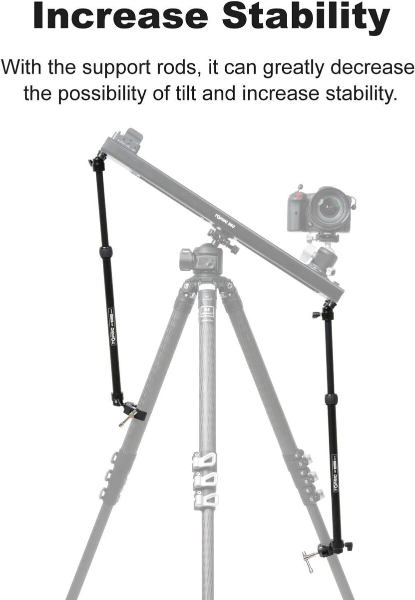 Accsoon'un **TopRig Destek Çubuğu**, özellikle TopRig S40 ve S60 gibi motorlu slider'ları tek bir tripod üzerinde kullanırken, esnemeyi (flex) ve titreşimi önlemek için tasarlanmış temel bir aksesuardır. Slider'ınızın bir ucunu tripoda monte ettiğinizde, bu destek çubuğu diğer ucu ile tripod bacağı arasında bir 'köprü' oluşturarak, slider'ın havada kalan ucunun aşağı doğru sarkmasını engeller. Bu, özellikle daha ağır kamera kurulumlarıyla yapılan çekimlerde, hareketin başlangıcından sonuna kadar pürüzsüz ve seviyeli kalmasını garanti eder.