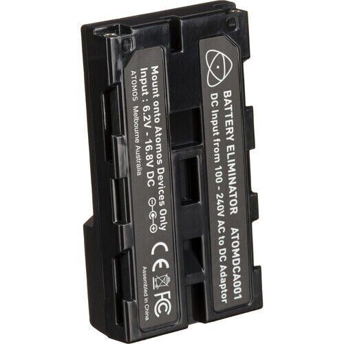 Atomos Batarya Eliminatörü, stüdyo ortamında, canlı yayınlarda veya uzun süreli çekimlerde batarya değiştirme endişesini ortadan kaldırmak için tasarlanmış basit ama vazgeçilmez bir aksesuardır. Standart bir **Sony L-Serisi (NP-F)** bataryanın şekline ve boyutuna sahip olan bu aparat, doğrudan cihazınızın batarya yuvasına takılır. Üzerindeki **kilitli DC girişi** sayesinde, Atomos AC güç adaptörünüzü veya bir D-Tap güç kablosunu bağlayarak, monitörünüze veya NP-F tipi batarya kullanan herhangi bir cihaza kesintisiz ve güvenilir bir güç sağlayabilirsiniz.