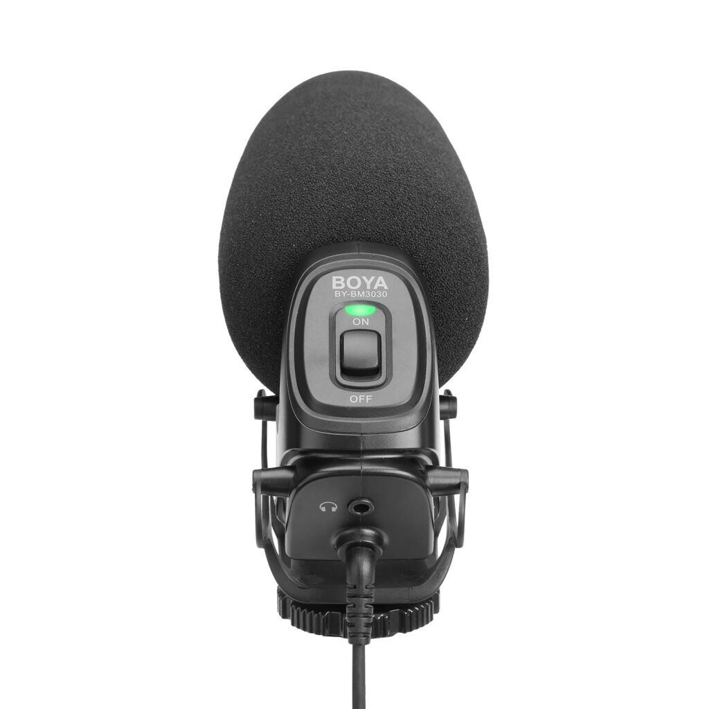 Boya BY-BM3030, DSLR fotoğraf makineleri, video kameralar, ses kayıt cihazları ve 3,5 mm mikrofon girişi bulunan diğer birçok cihazla uyumlu süperkardioid kapasitif shotgun mikrofonudur.