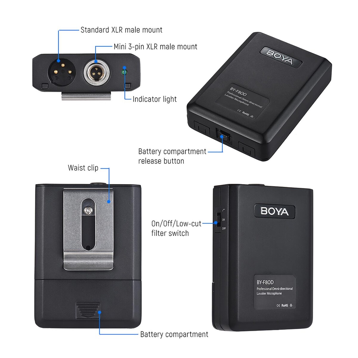 Boya BY-F8OD Çok Yönlü Akustik Vokal Yaka Mikrofon (Yüksek kalite omni-directional sahne vokal yaka mikrofonu 48V phantom güç uyumlu )