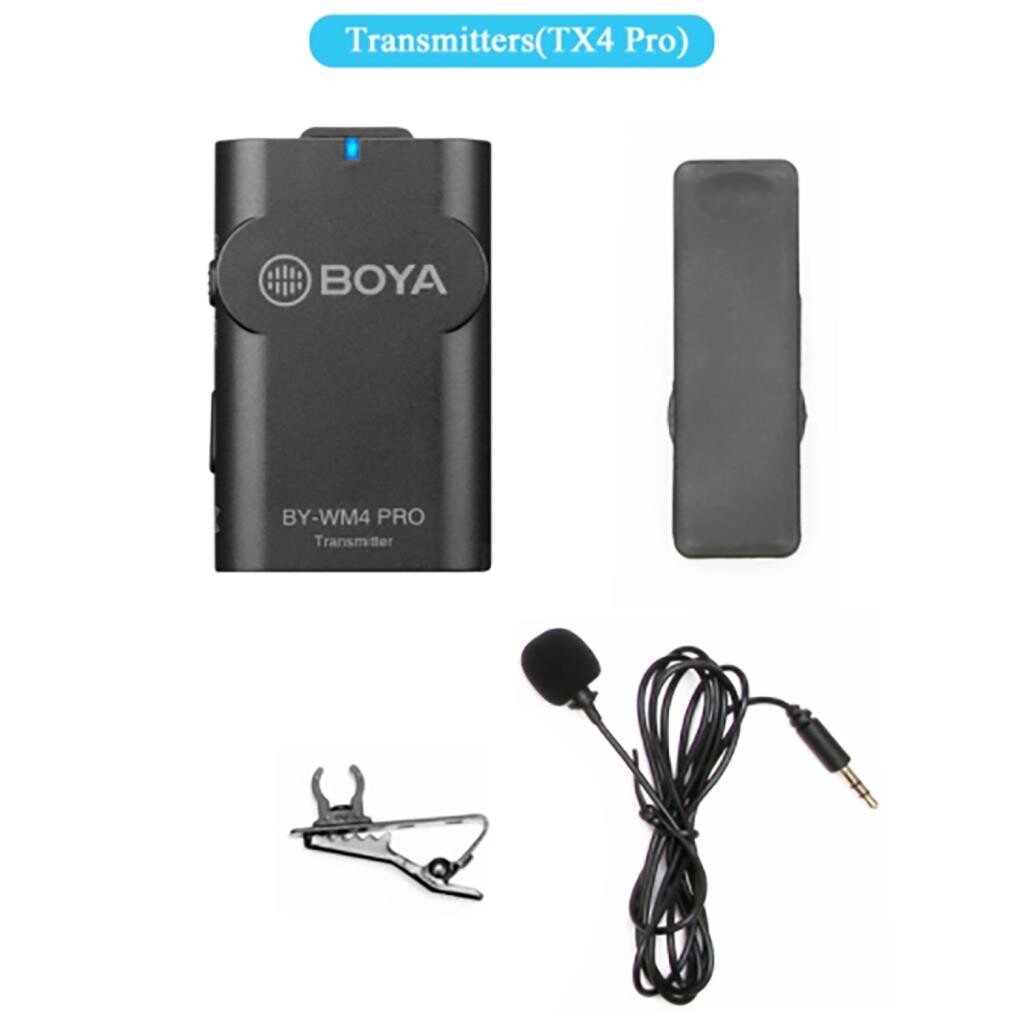 BY-WM4 Pro TX, boya WM4 Pro serisinin tüm alıcılarıyla uyumlu kablosuz mikrofon vericisidir. Cihaz net ve kaliteli bir ses sağlar. Yaka mikrofonu özel olarak geliştirilmiş sadece konuşmacının sesini almaya yönelik tasarlanmıştır, bu sayede çekimlerinizde çevre sesinden büyük ölçüde kurtulmuş olursunuz.
