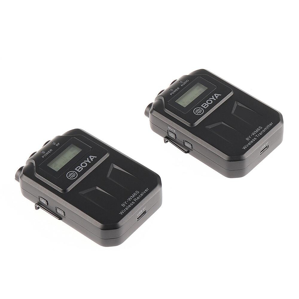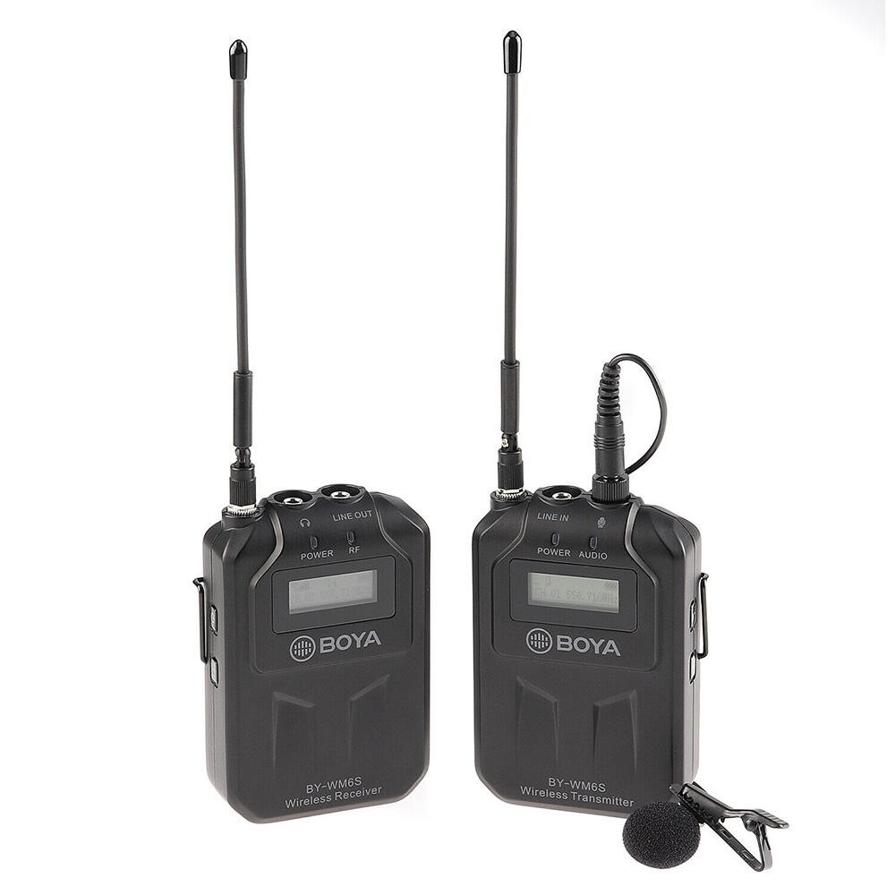 BOYA BY-WM6S, akıllı telefon, tablet, DSLR kamera, video kamera, ses kaydedici ve daha bir çok cihaz ile uyumlu yeni nesil UHF kablosuz mikrofon sistemidir.