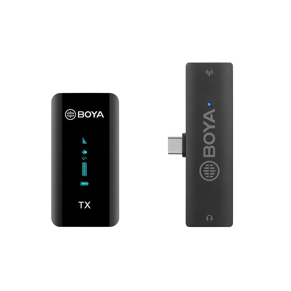 BOYA BY-XM6-S5, bir verici ve bir alıcıdan oluşan 2.4 GHz çift kanallı kablosuz mikrofon sistemidir. Type-C bağlantı noktalarına sahip Android cihazları için yüksek kaliteli ses sağlar. Vlog, içerik oluşturma, canlı akış, kayıt vb. için idealdir.