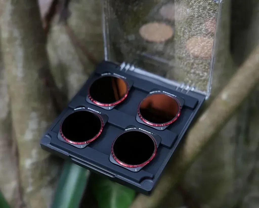Freewell Sherpa Series DJI Air 3 Bright Day Filter Kit (4-Pack), DJI Air 3 drone’unuzla parlak gün ışığı koşullarında hem pozlama hem de yansıma kontrolü sağlayan hibrit ND/PL modülleri içerir. QuickSwap manyetik montaj halkasıyla saniyeler içinde takılıp çıkarılabilen her bir modül, sabit ND yoğunluğu ve döner polarize katmanını tek bir ünitede birleştirerek sahada pratik kullanım sunar.