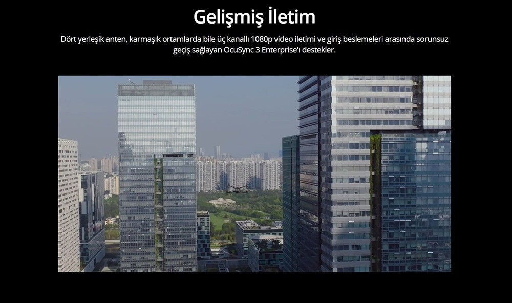 Yukarı/Aşağı/Geri/Yana: 0,5-33 mBakış Açısı 65° (Y), 50° (D) Çalışma Ortamı Net desenli ve yeterli aydınlatmaya sahip yüzeyler (> 15 lux) Kızılötesi Algılama Sistemleri Engel Algılama Menzili 0.1 ila 10 m Bakış Açısı 30° Çalışma Ortamı Büyük, dağınık ve yansıtıcı engeller (yansıma > %10) TB30 Akıllı Uçuş Bataryası Kapasite 5880 mAh Gerilim 26,1 V Pil Türü Li-ion 6S Enerji 131.6 Wh Net Ağırlık Yaklaşık 685 gr Çalışma Sıcaklığı -20° - 50° C (-4° - 122° F) Depolama Sıcaklığı 20° - 30° C (68° - 86° F) Şarj Sıcaklığı -20° - 40° C (-4° - 104° F) Kimyasal Sistem LiNiMnCoO2 Yardımcı Işıklar Etkili Aydınlatma Mesafesi 5 m Aydınlatma Tipi 60 Hz, sabit parlama Uzaktan Kumanda Ekran 1920×1200 piksel, 1200 cd/m² parlaklığa sahip 7,02 inç LCD dokunmatik ekran Dahili Batarya Li-ion (6500 mAh @ 7,2 V) Şarj Tipi Pil istasyonu veya USB-C (maksimum 65W, 20V) Şarj Süresi 2 saat Kimyasal Sistem LiNiCoAIO2 Harici Batarya (WB37 Akıllı Batarya) Kapasite 4920 mAh Voltaj 7,6 V Pil Tipi Li-ion Enerji 37,39 Wh Kimyasal Sistem LiCoO2 Çalışma Süresi Dahili Pil Yaklaşık 3 saat 18 dk Dahili + Harici Batarya Yaklaşık 6 saat Koruma Derecesi IP54 GNSS GPS+Galileo+BeiDou Çalışma Sıcaklığı -20° - 50° C (-4° - 122° F) O3 Enterprise Çalışma Frekansı 2.4000-2.4835 GHz, 5.725-5.850 GHz Maksimum İletim Mesafesi 15 km (FCC); 8 km (CE/SRRC/MIC) Verici Gücü (EIRP) 2,4 GHz: <33 dBm (FCC); <20 dBm (CE/SRRC/MIC) Kablosuz İnternet Protokol Wi-Fi 6 Çalışma Frekansı 2.4000-2.4835 GHz; 5.150-5.250 GHz; 5.725-5.850 GHz Bluetooth Protokol Bluetooth 5.1 Çalışma Frekansı 2.4000-2.4835 GHz BS30 Şarj İstasyonu Boyutlar 353×267×148 mm Net Ağırlık 3,95 kg Uyumlu Pil Türü TB30 Akıllı Uçuş Bataryası, WB37 Akıllı Batarya Giriş 100-240 VAC, 50/60 Hz Çıkış TB30: 26,1 V, 8,9 A; WB37: 8,7 V, 6 A Çıkış Gücü 525W USB-C bağlantı noktası Maks. 65 W çıkış gücü USB-A bağlantı noktası Maks. 10 W (5 V, 2 A) çıkış gücü Güç Tüketimi (boşta) < 8W Çıkış Gücü (pil ısıtırken) Yaklaşık 30W Çalışma sıcaklığı -20° - 40° C (-4° - 104° F) Koruma Derecesi IP55 (kapak kapalıyken) Şarj Süresi Yaklaşık 30 dk (%20-%90), 50 dk (%0-%100) Koruma Özellikleri Geri Akış Koruması, Kısa Devre Koruması, Aşırı Gerilim Koruması, Aşırı Akım Koruması, Sıcaklık Koruması