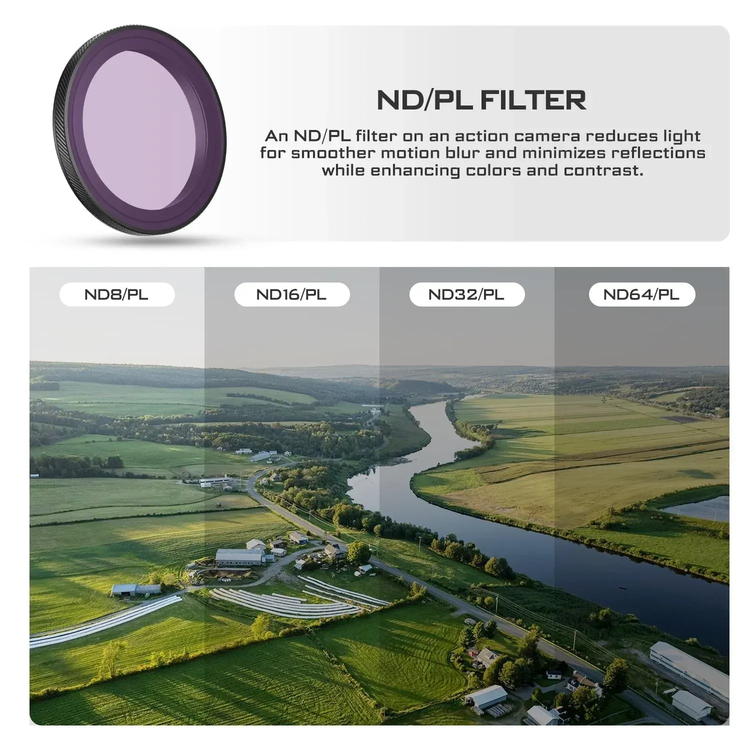 Freewell Sherpa Series DJI Osmo Action 5 Pro ND/PL Filters 4’lü Set, Osmo Action 5 Pro’nuzla günışığında hem pozlama hem de yansıma kontrolü yapmanızı sağlayan hibrit ND/PL filtrelerinden oluşur. QuickSwap manyetik taban halkasıyla saniyeler içinde takılıp çıkarılabilen bu modüller, sabit ND yoğunluğu ve döner polarize katmanı tek bir ünitede birleştirerek sahada pratik kullanım sunar.