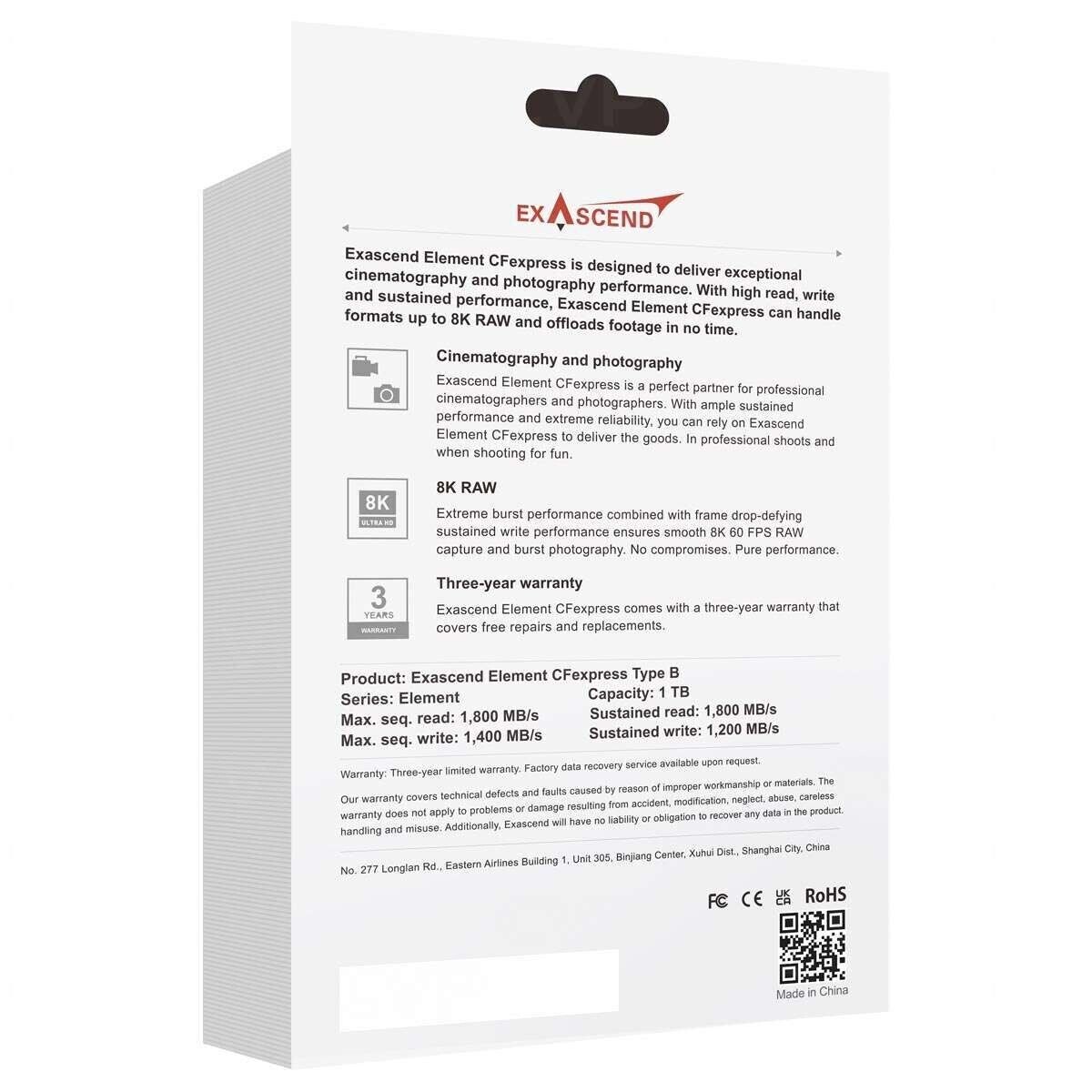 - 1 x Exascend Element 1TB CFexpress Type B Hafıza Kartı