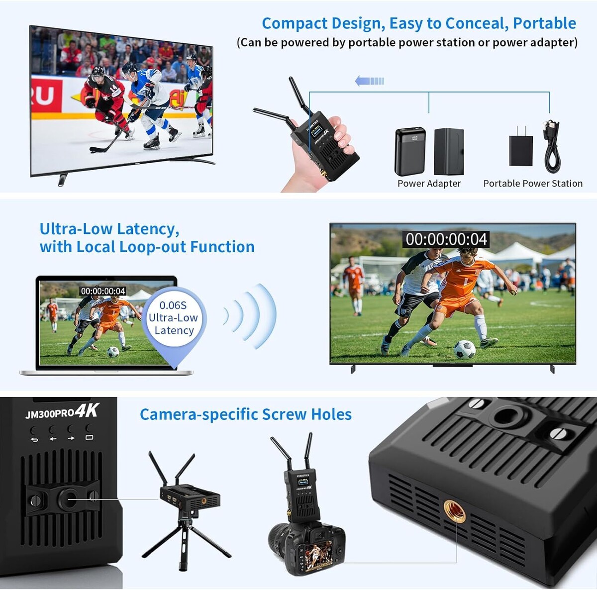 ÖZELLİKLERMarka : PXÜrün Modeli : JM300ProWiFi Frekansı : 5GGüç : DC 9- 16 Tip C 5VDestek Portu : TX : HDMI (IN) + HDMI (OUT)RX : HDMI (OUT)*2Çözünürlük : 4K@30HzGERÇEK YÜKSEK ÇÖZÜNÜRLÜK 4K@30HzYüksek çözünürlüklü video prodüksiyonuna ihtiyaç duyan kameramanlar için 30 fps'de 4K@30Hz çözünürlüğe sahiptir.120 M'YE KADARİLETİM ARALIĞI 200M'ye kadar iletim mesafesi, sorunsuz ve kararlı iletim. Çekim, yayın, toplantılar, seminerler ve diğer etkinlikler için çeşitli ihtiyaçlara uygundur