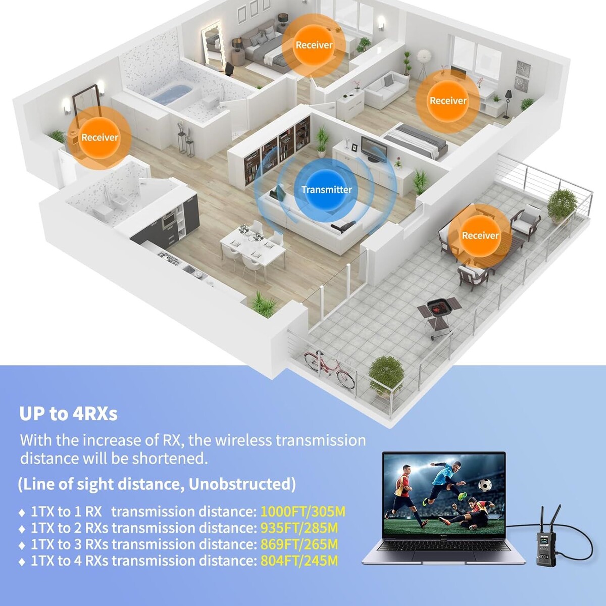 Full HD 1080P 60Hz ve 4K 30Hz kablosuz iletimini destekler.