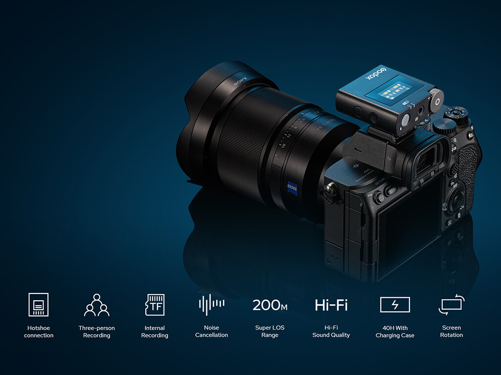 Kablosuz sistem, 650 ft (200 m) uzatılmış iletim mesafesiyle yüksek kaliteli ses kaydı sağlar. Dış mekan çekimleri ve geniş alanlar için mükemmel olup, kamera konumlandırma ve istenen sesin yakalanmasında esneklik sunar.