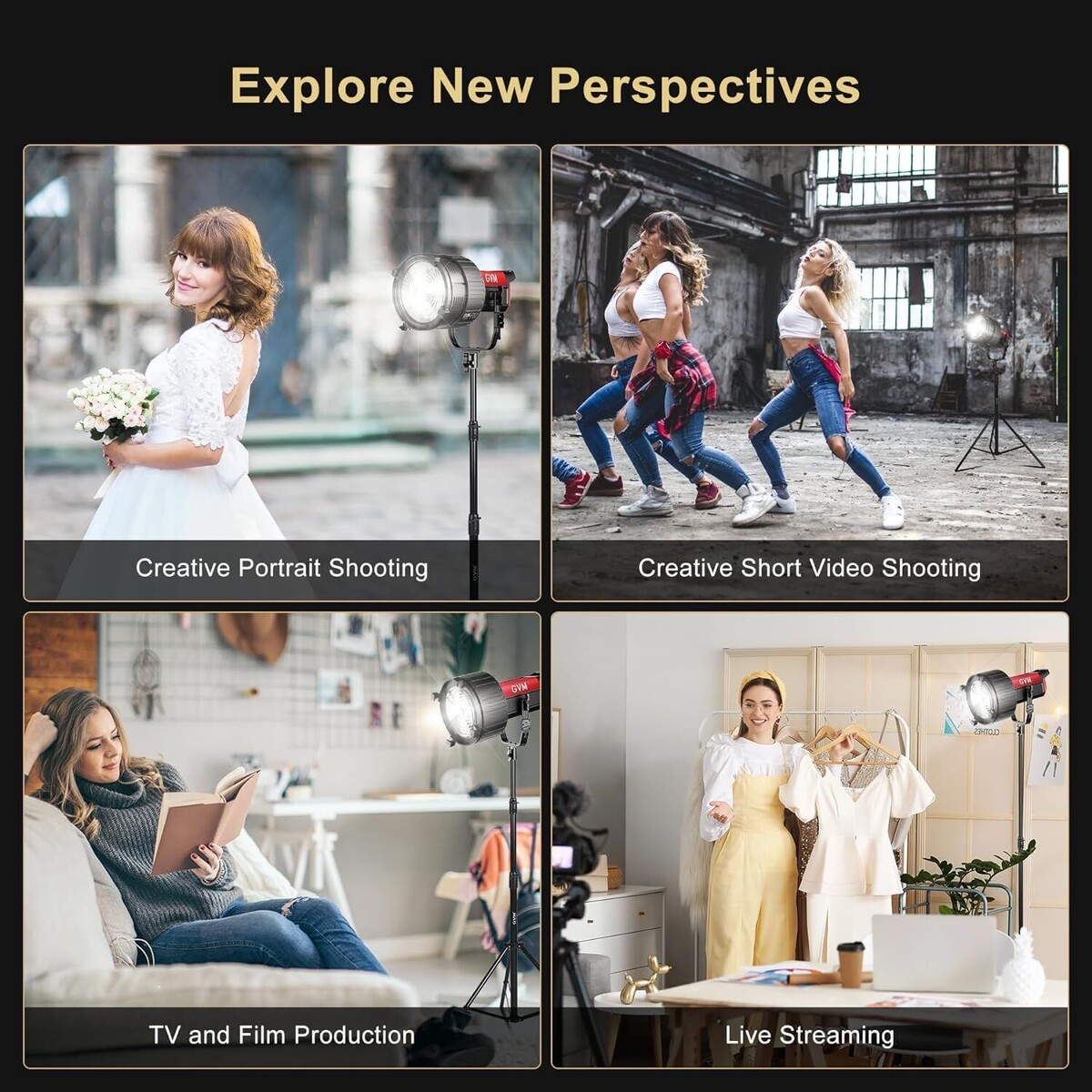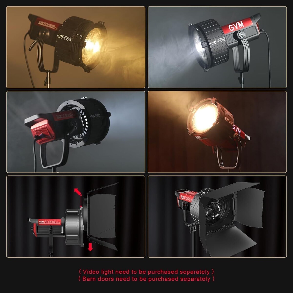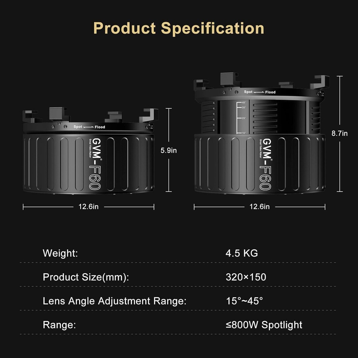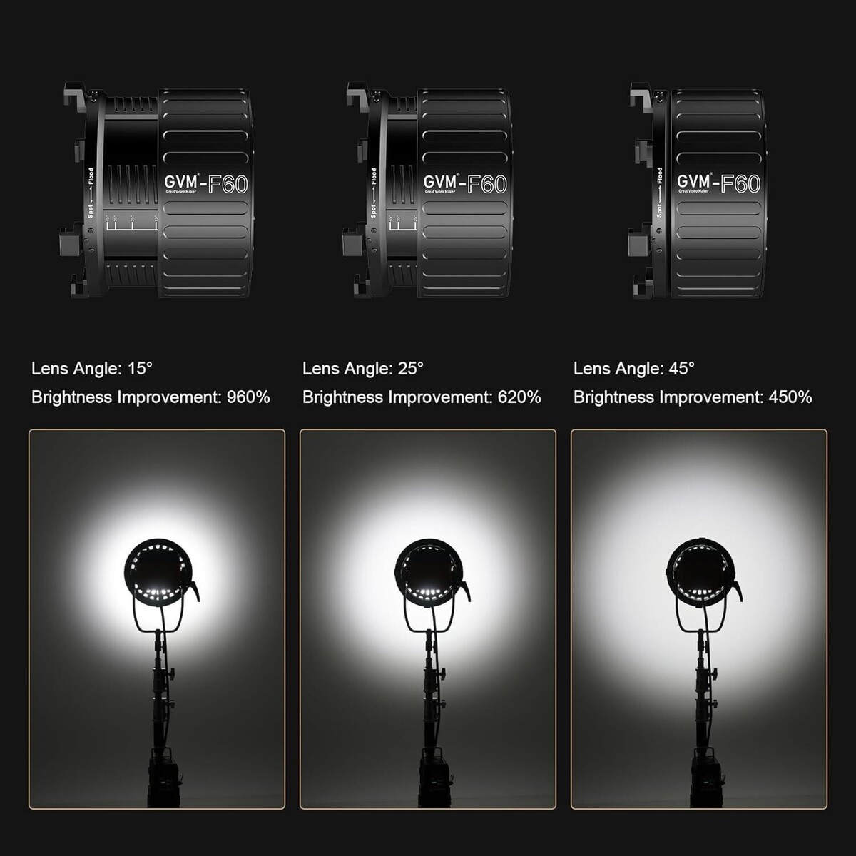 GVM F60 Fresnel Lens, 32 cm çapında optik cam elemanıyla F60 LED panelinizin ışığını 15°–45° arasında ayarlanabilir odaklı dar bir demet veya daha geniş yumuşak ışık haline getirir. İnce profilli alüminyum çerçevesi, hem stüdyo hem saha kullanımına uygundur ve hızlı tak-çıkar Bowens montajı sayesinde esnek aydınlatma çözümleri sunar.