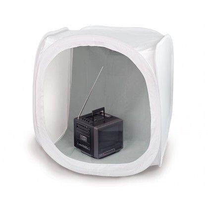 Fotoğraflanacak objelerin eşit ve yumuşak aydınlatılabilmesi için kübik şekilli hafif çadır.