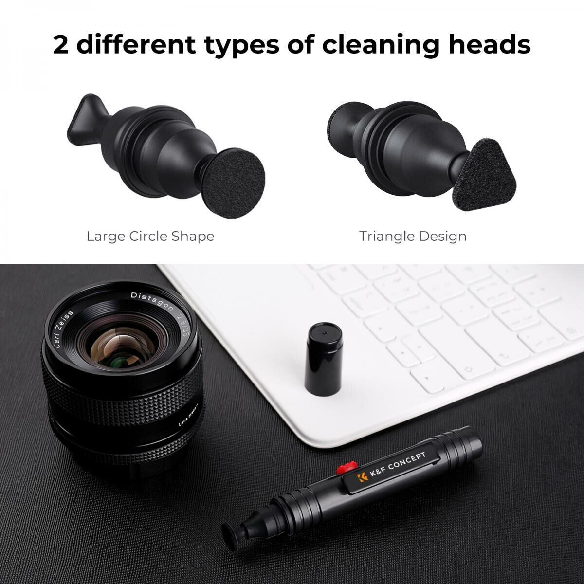 K&F Concept KF1691 Çift Taraflı Karbon Başlık Lens Temizleme Kalemi