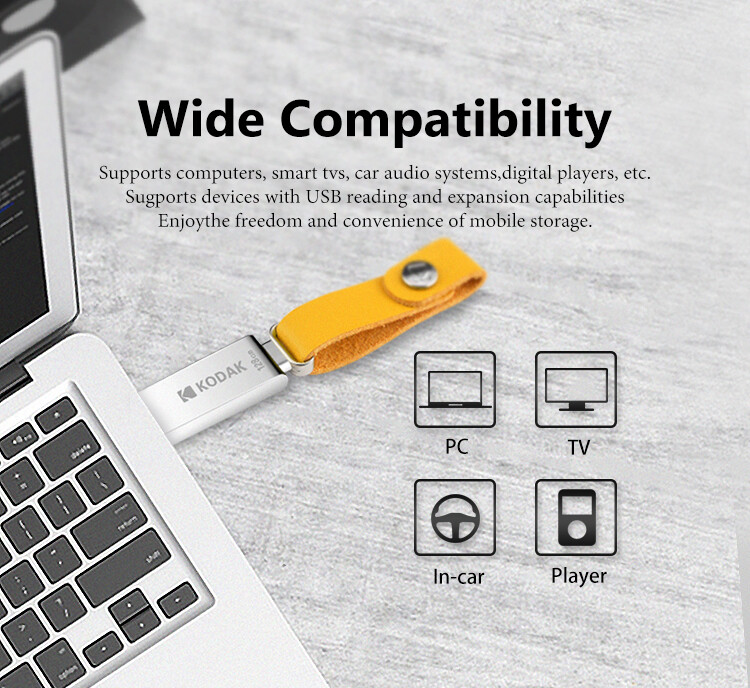 Bilgisayarlar, akıllı TV’ler, araç ses sistemleri, dijital oynatıcılar ve daha fazlasını destekler. USB üzerinden okuma ve depolama genişletme özelliğine sahip cihazlarla uyumludur. Taşınabilir depolamanın özgürlüğünü ve pratikliğini dilediğiniz her yerde yaşayın.