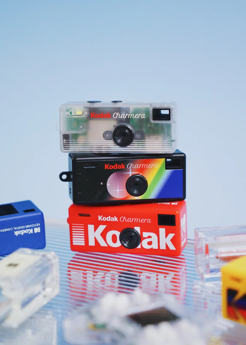 1987'nin efsanevi Kodak Fling tek kullanımlık kamerasının ruhu, 2025'te anahtarlık boyutuna sığdı. Kodak Charmera, gerçekten çalışan bir dijital kamera ve aynı zamanda koleksiyonluk bir blind box. 7 retro tasarım, 1/48 ihtimalli gizli secret edition ve kasıtlı olarak imperfect, nostaljik görüntüler — megapiksel rekabetinin tamamen dışında bir kamera.