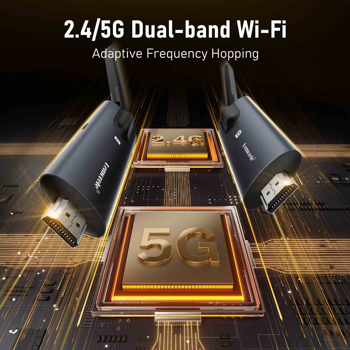 5dBi yüksek kazançlı antenler ve 5G Wi-Fi ile donatılmış olan bu cihaz, açık ortamlarda 200 metreye (1TX–1RX), 130 metreye (1TX–2RX) veya 100 metreye (1TX–3/4RX) kadar istikrarlı 1080P@60Hz video ve ses akışı sağlar.