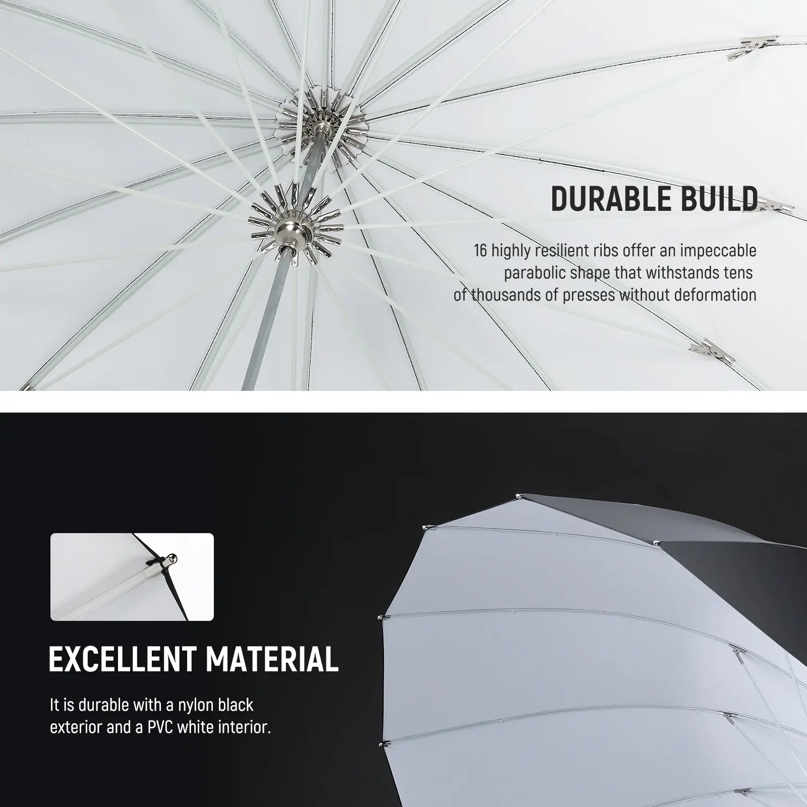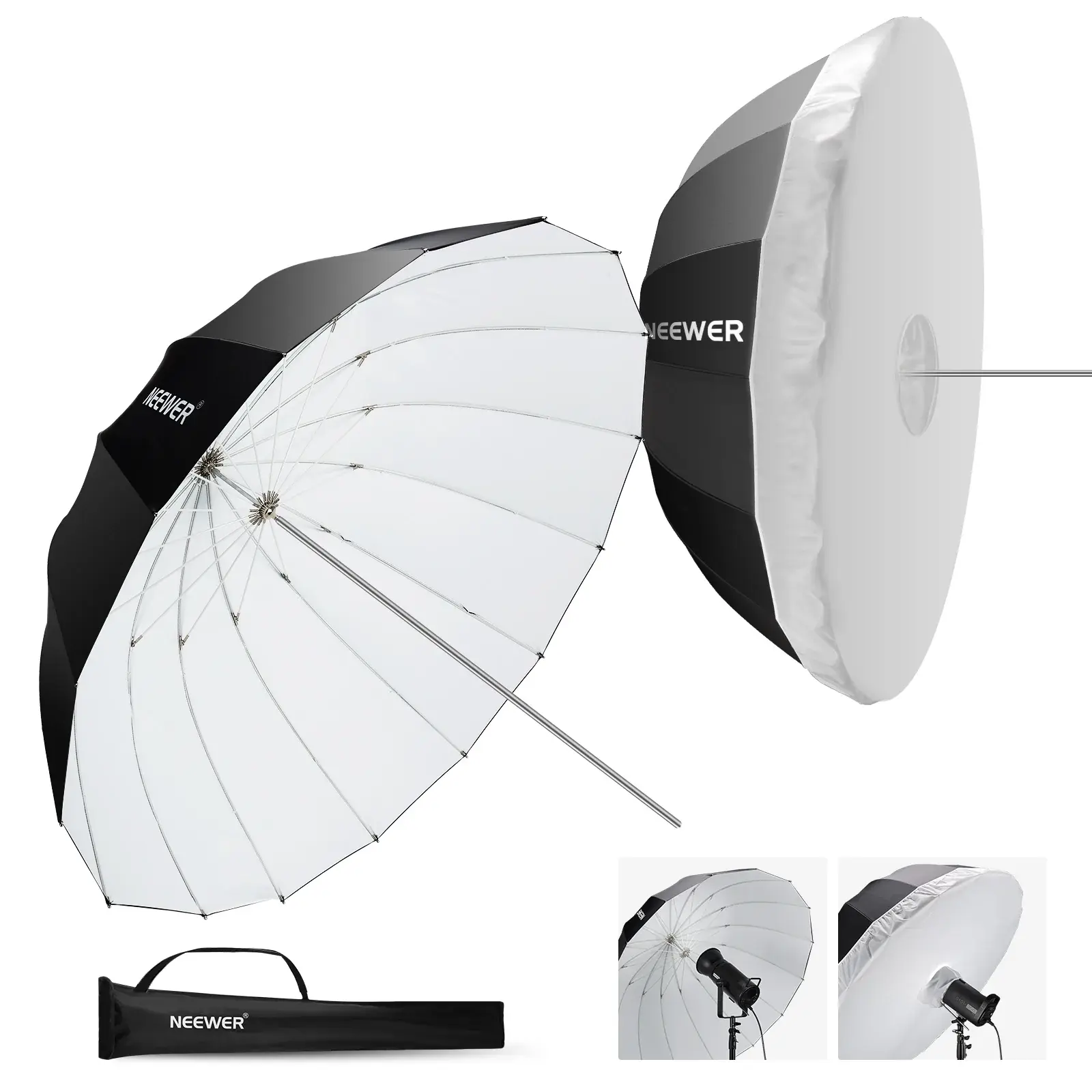 NEEWER 180cm (71') Devasa Profesyonel Siyah/Beyaz Parabolik Şemsiye ve Difüzör
