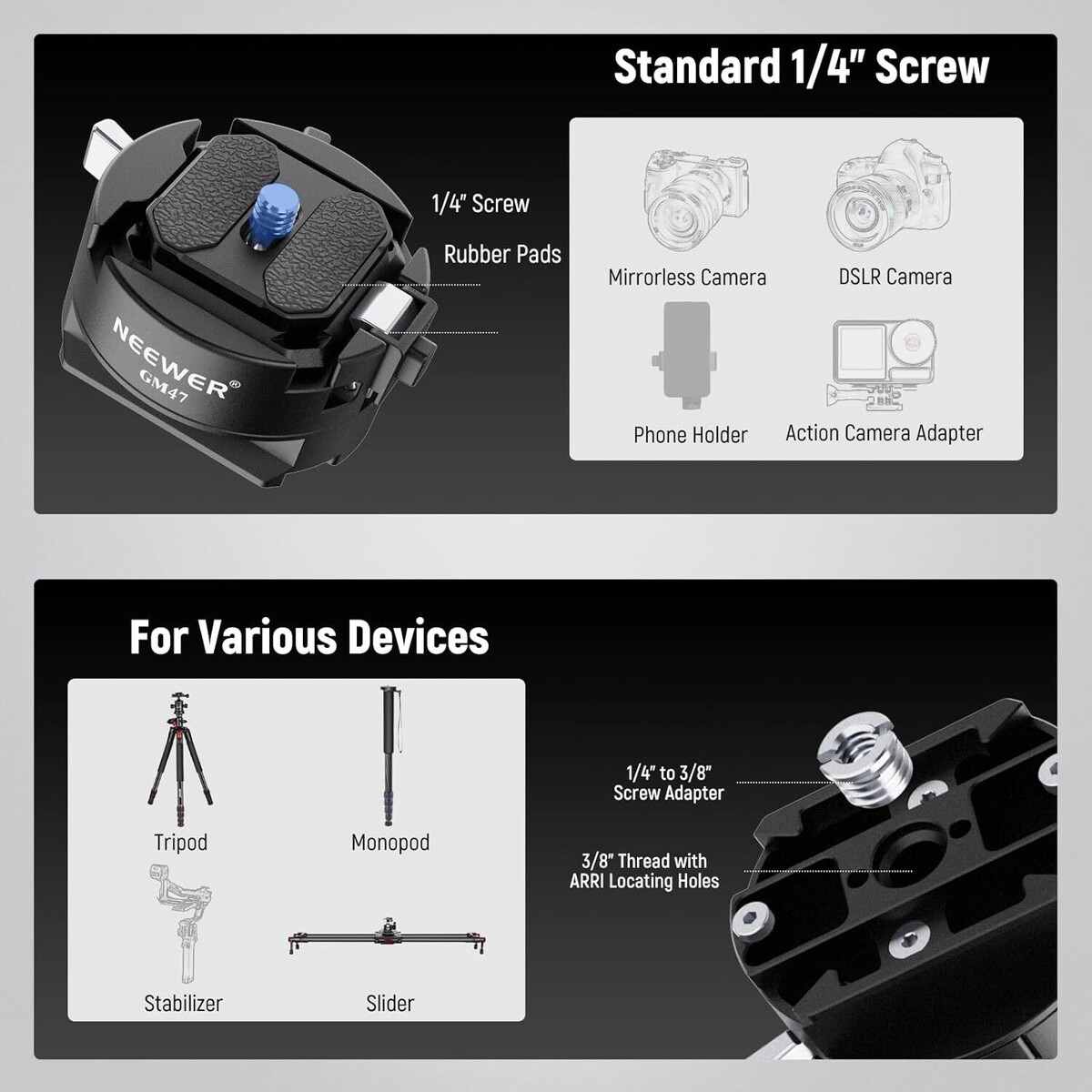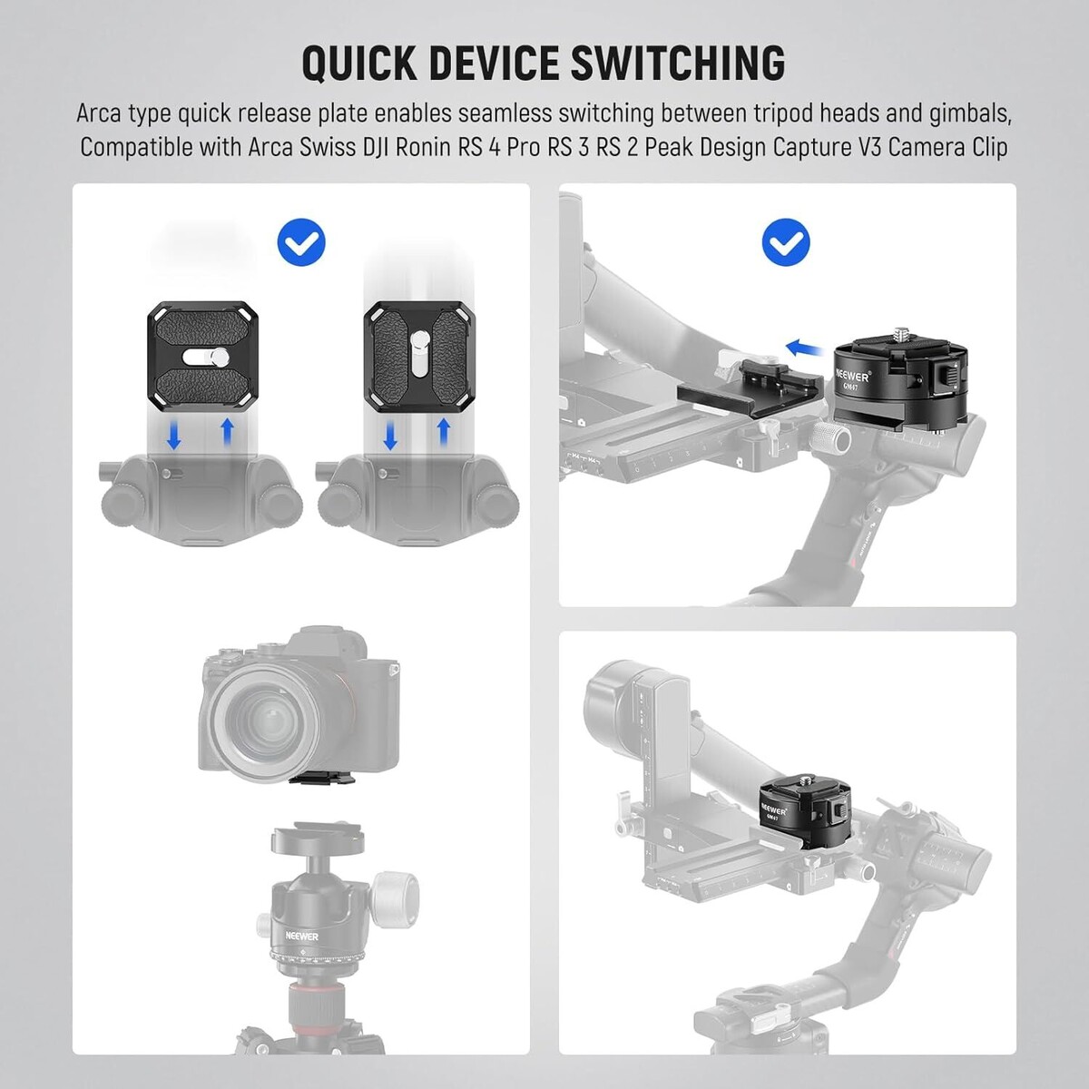 NEEWER GM47 Kamera Quick Release Plate Kiti (Ronin RS & PD Capture Uyumlu, Otomatik Kilit)