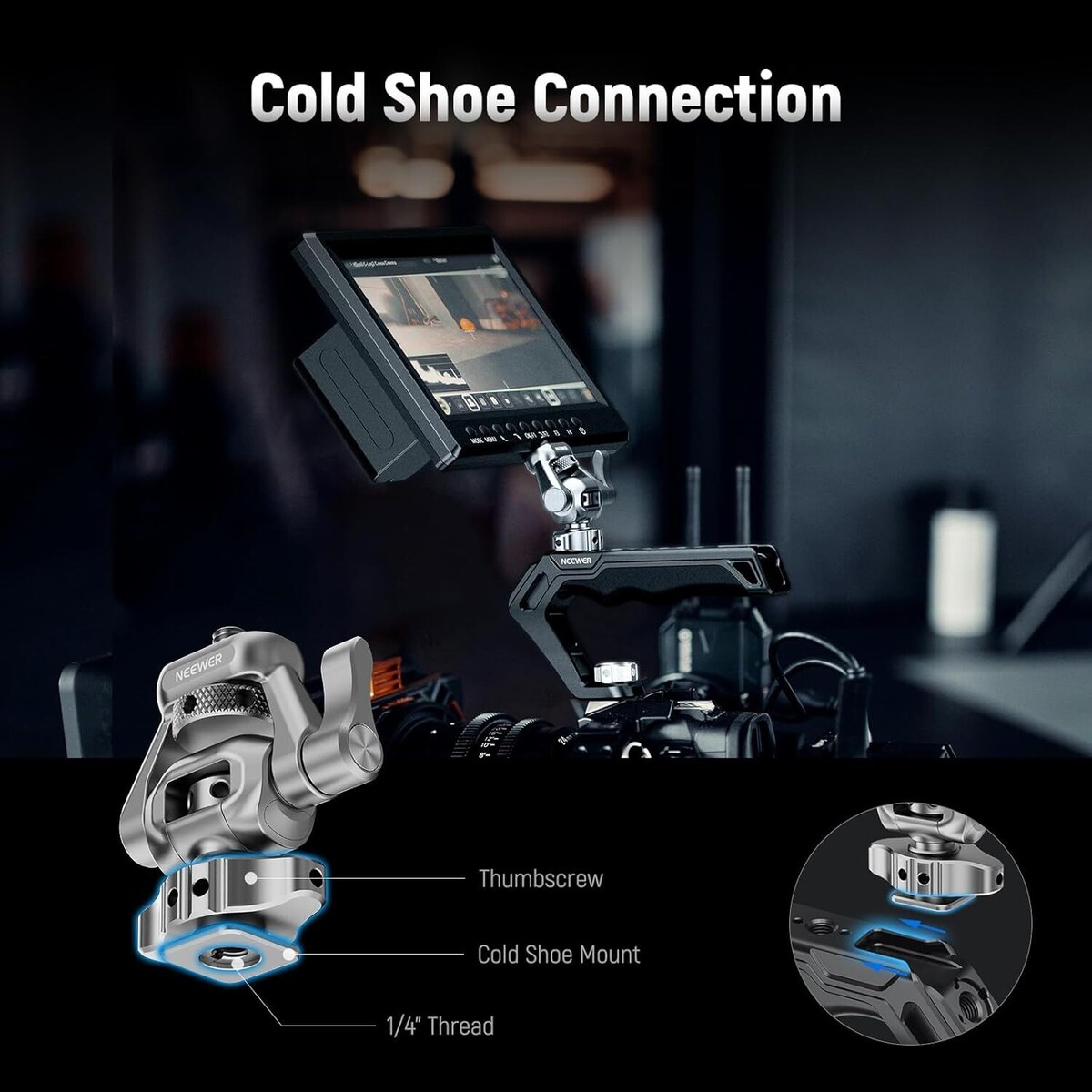 NEEWER MA017 Kamera Monitör Bağlantı Aparatı ve Cold Shoe Adaptörü