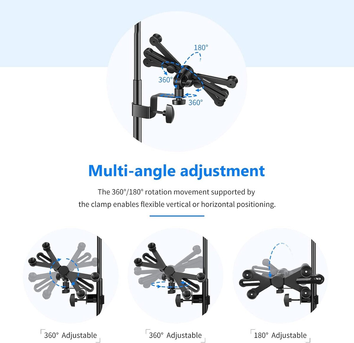 360 Derece Dönebilir Kelepçeli, Mikrofon ve Müzik Standı Uyumlu Montaj Aparatı