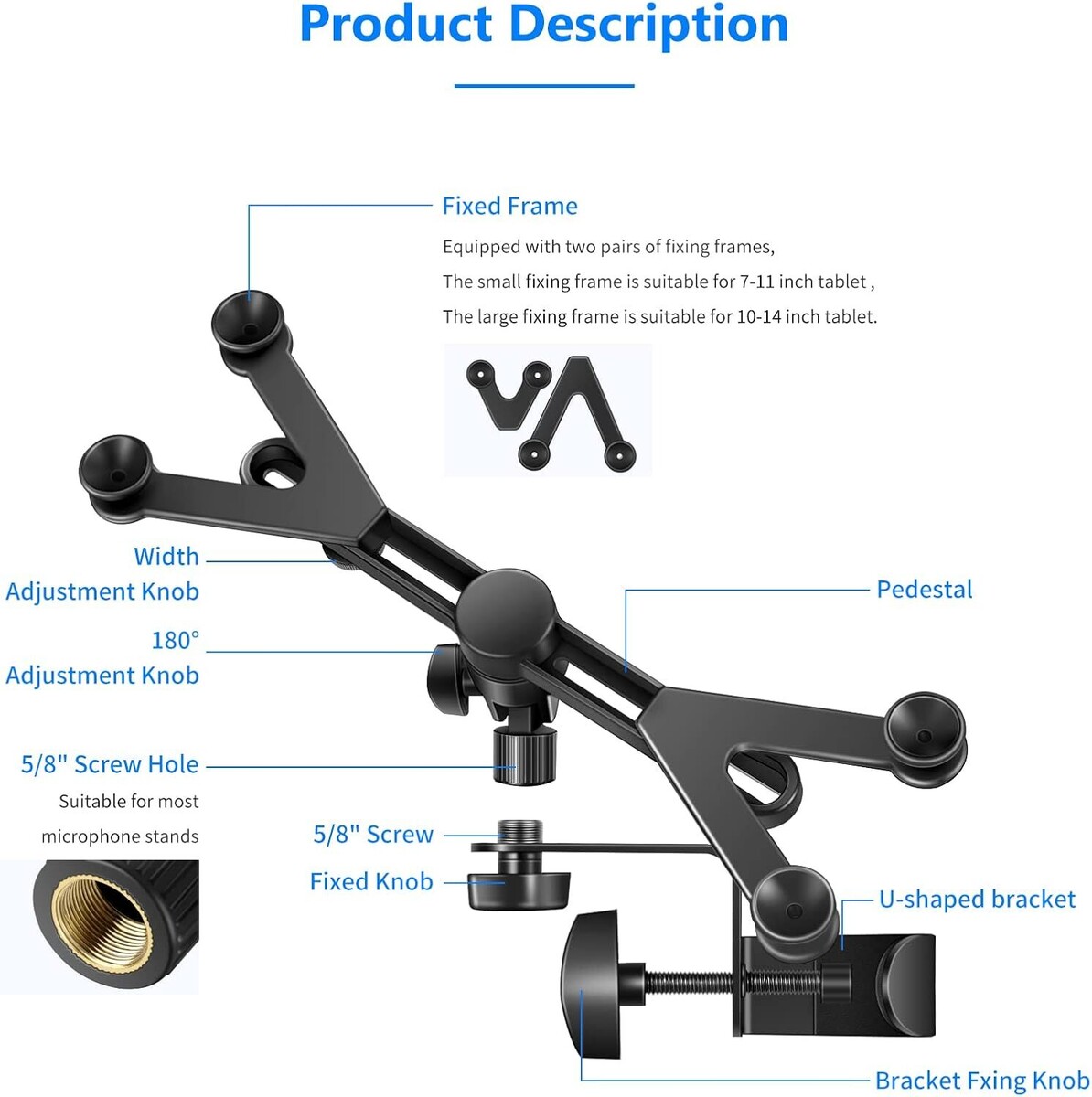 - **Güvenli Montaj:** Tablet tutucusu, bir mikrofon standına veya müzik sehpasına sabitlenmek üzere tasarlanmıştır. Bu sayede sahne, stüdyo veya ev kullanımı için güvenilir bir sabitleme sağlar.