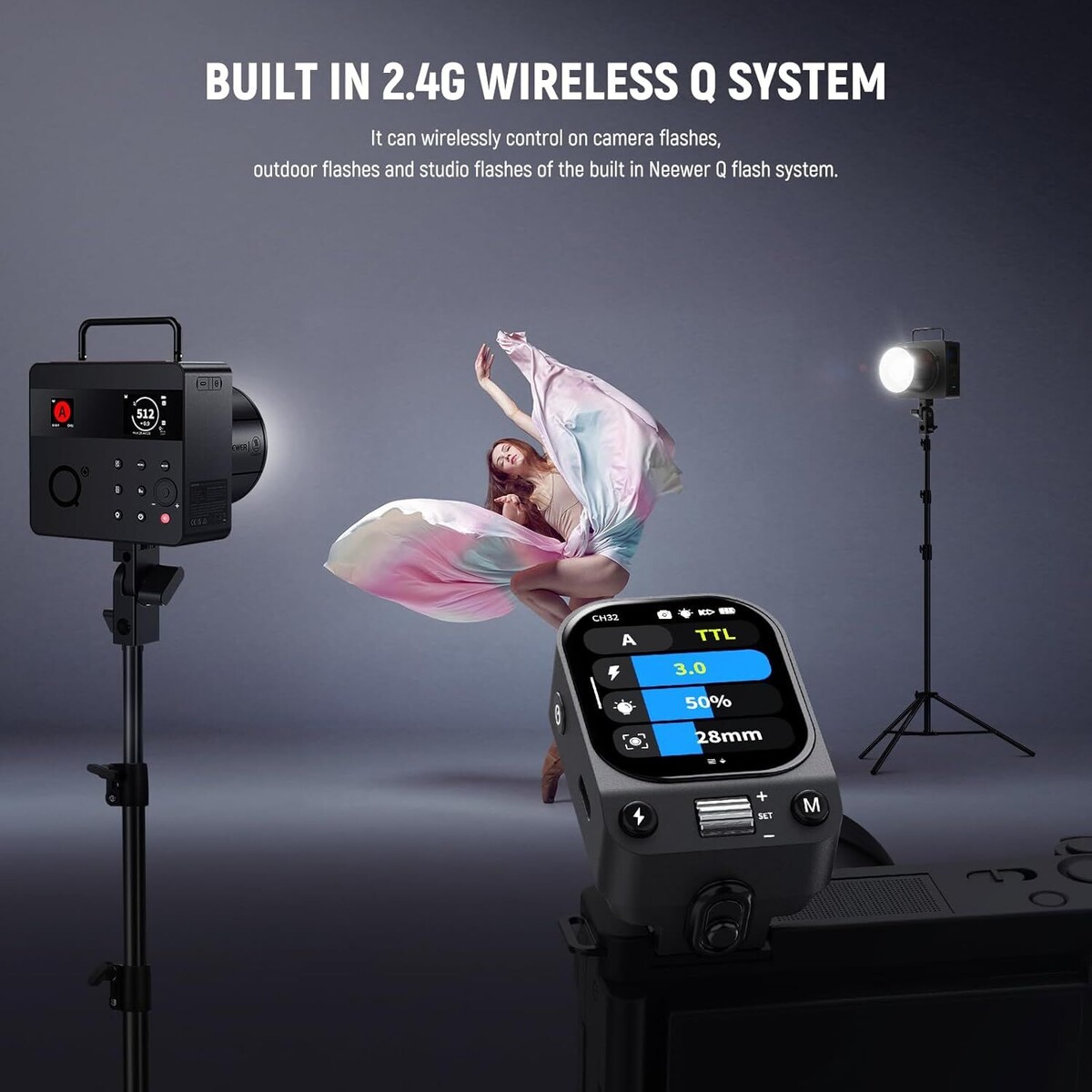 - NEEWER Q Sistemi Entegrasyonu: Dahili 2.4G Kablosuz Q Sistemi ile NEEWER'ın Q sistemine sahip (Z1-C, Z2-C, Z760-C, vb.) flaşlarını 100 metreye kadar mesafeden kablosuz olarak tetikleyebilir ve kontrol edebilir.