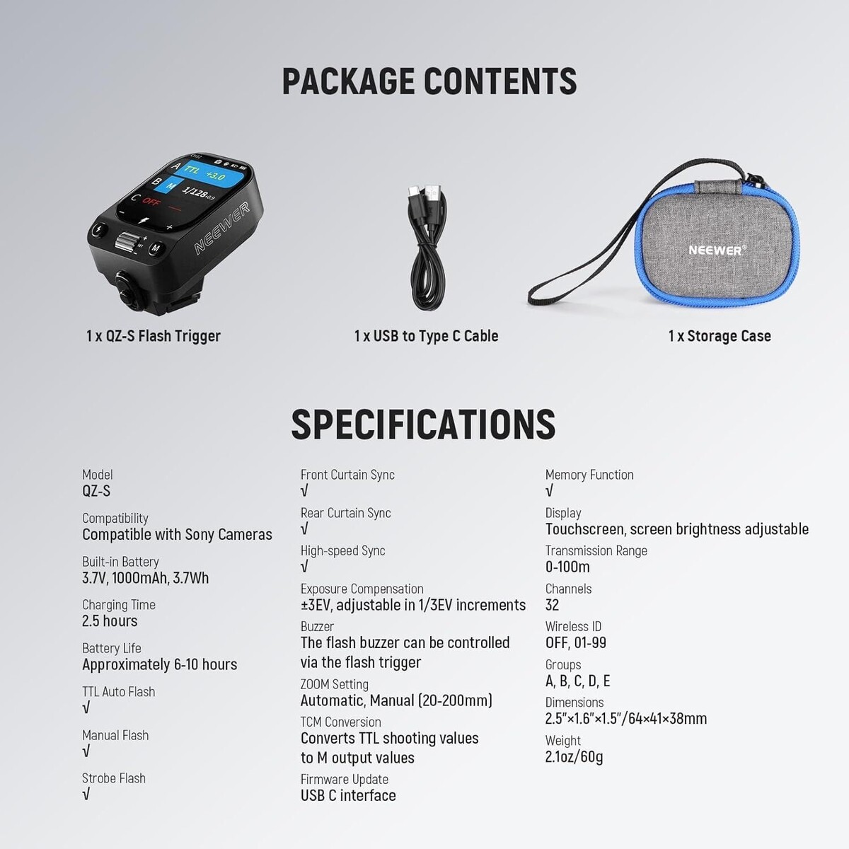 - 1 x NEEWER QZ-C Flaş Tetikleyici Vericisi
