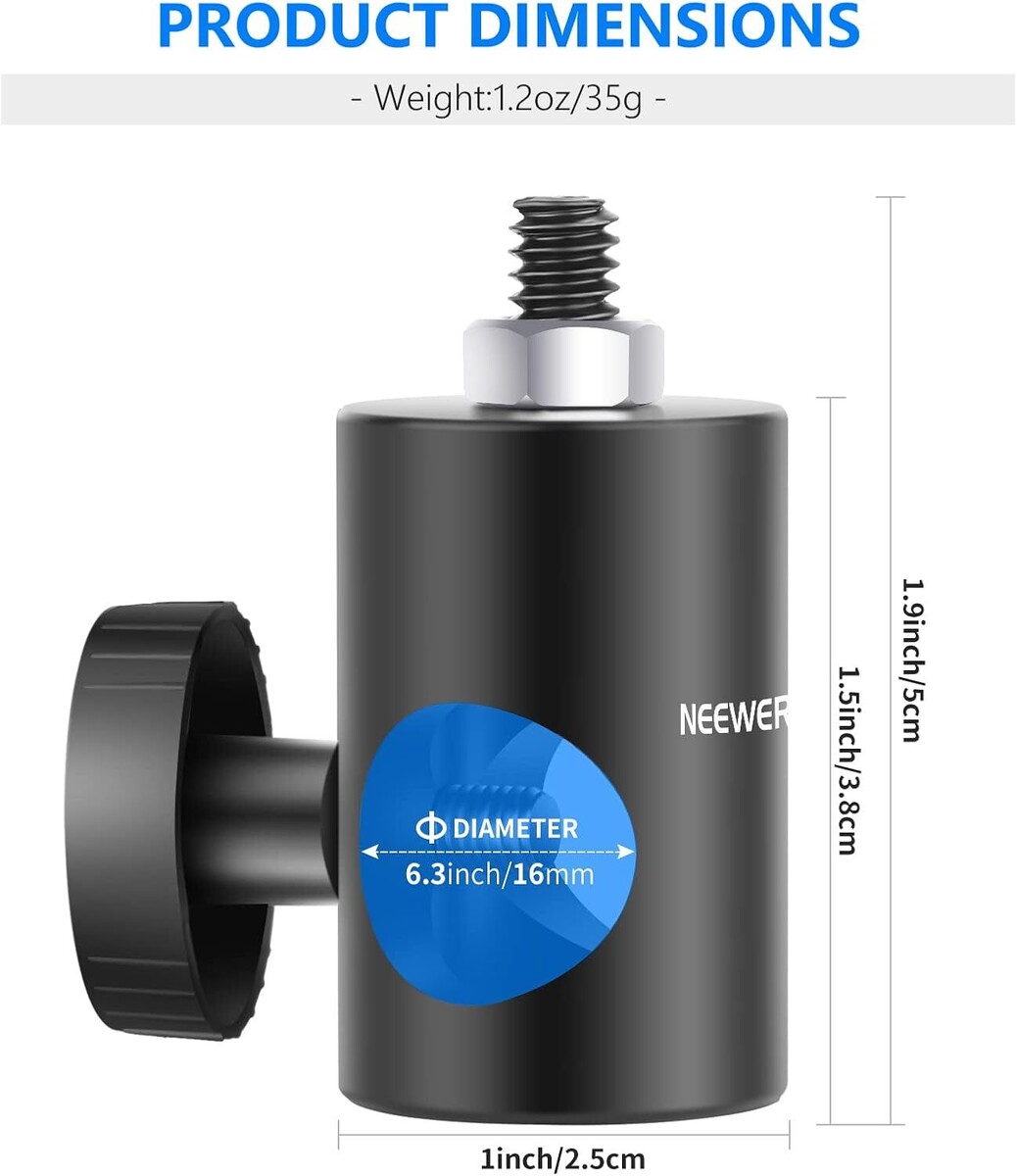 - Kolay Kurulum: Adaptörü ışık standına (dahil değildir) yerleştirin, sabitleme düğmesini çevirerek iyice sıkın ve ardından 1/4' vida delikli cihazınızı monte edin. Yatay ve dikey montajı destekler.