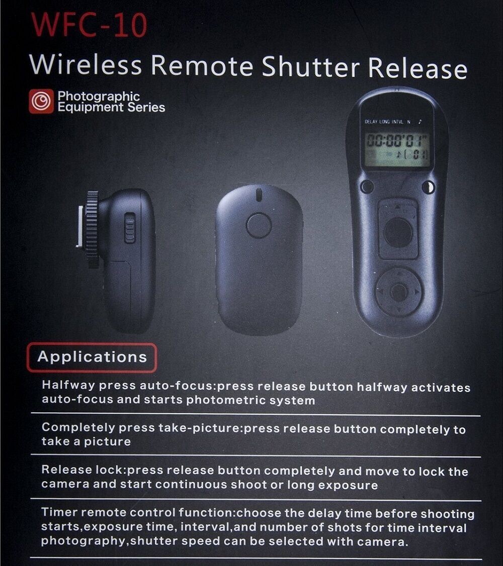 Bu ürün, kullanıcının kameranın deklanşörünü 50 metreye kadar mesafeyle serbest bırakmasını sağlayan kablosuz bir uzaktan kumandadır.