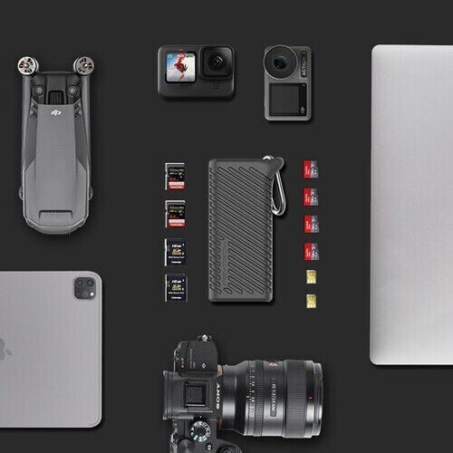PGYTECH CreateMate High-Speed Card Reader, fotoğrafçılar ve içerik üreticileri için tasarlanmış, hafif ve taşınabilir bir kart okuyucu ve saklama çözümüdür. USB 3.2 Gen 1 (5 Gbps) bağlantısı sayesinde hızlı veri transferi sunar. SD ve microSD kartlar için ayrı yuvaları bulunur ve aynı anda veri aktarımına olanak tanır. Ayrıca, 4 SD kart, 4 microSD kart ve 2 nano SIM kartı saklayabilen entegre bir saklama alanına sahiptir. IP54 koruma sınıfı sayesinde suya, toza ve darbeye karşı dayanıklıdır. Kompakt boyutları ve karabina klipsi ile kolayca taşınabilir.