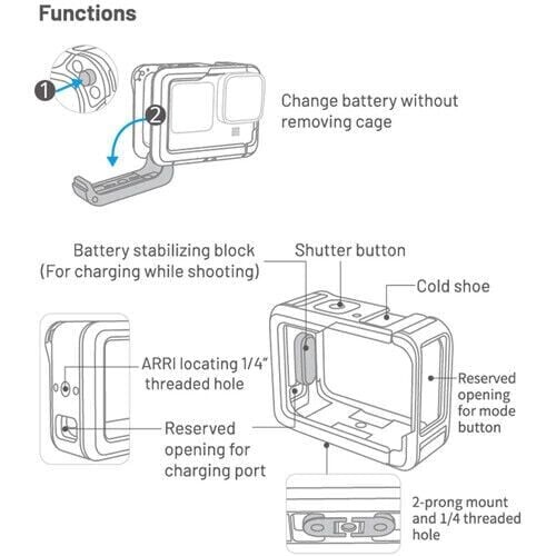 PGYTECH GoPro 12 Camera Cage, GoPro HERO12, HERO11, HERO10 ve HERO9 modelleriyle uyumlu, hafif ve dayanıklı bir alüminyum koruma çerçevesidir. Kafes, kamera üzerinde ek aksesuar montajı için bir adet soğuk ayakkabı yuvası ve bir adet 1/4”-20 dişi vida deliği içerir. USB-C güç girişi için menteşeli kapak sayesinde, kameranın şarj edilmesi veya güç alması sırasında kolay erişim sağlanır. Kafes, yatay ve dikey çekim modları arasında geçiş yapmayı mümkün kılar ve GoPro’nun resmi aksesuarlarıyla uyumludur. Kamera bataryası ve hafıza kartına erişim için üstten açılır kapak tasarımı sunar.()