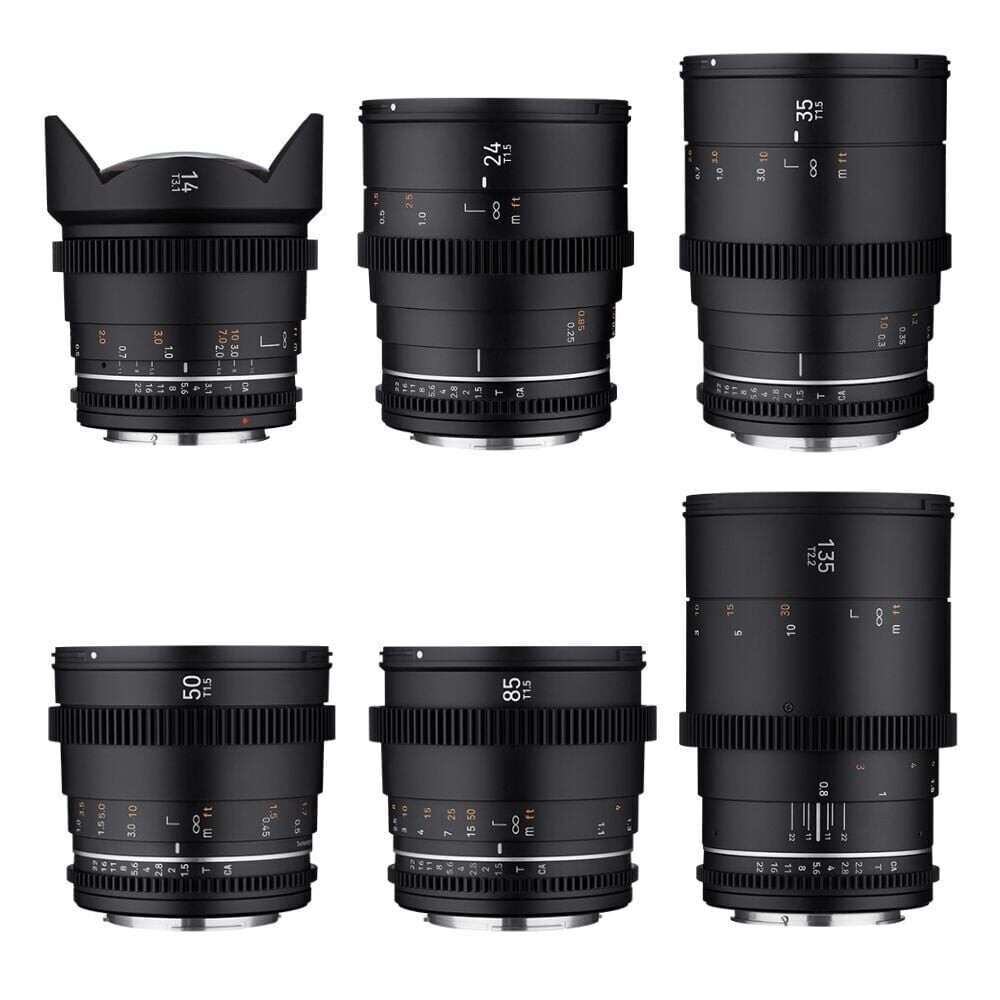 - Samyang 14mm, 24mm, 35mm, 50mm, 85mm ve 135mm VDSLR MK2 Cine Lensler (Sony E)