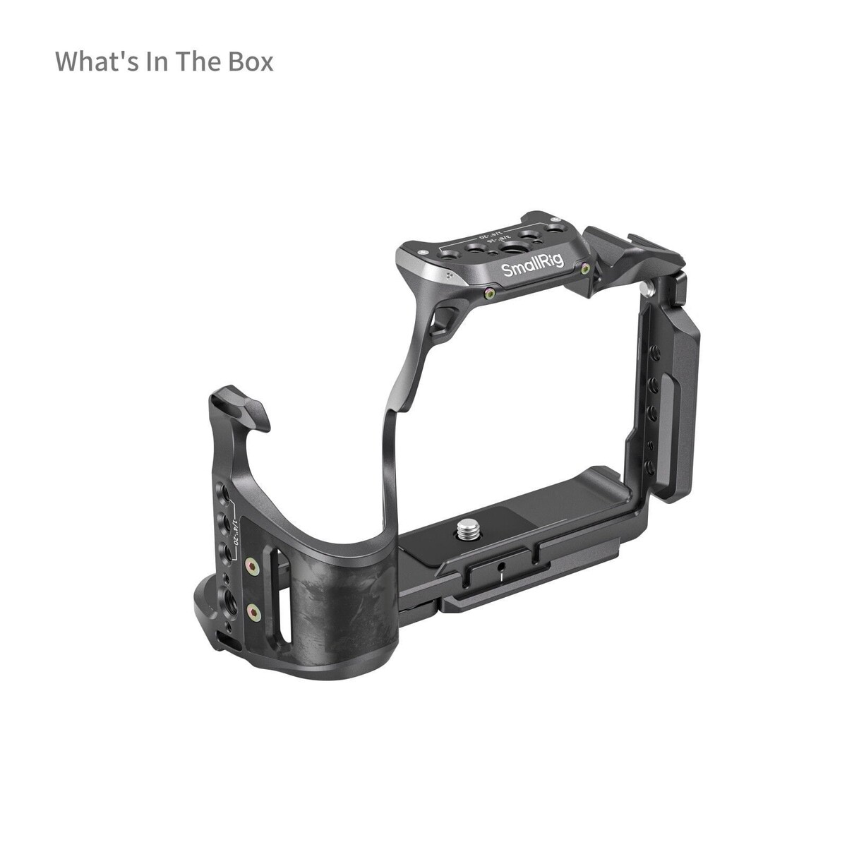 1/4'-20 dişli delikler, ARRI 3/8'-16 konumlandırma delikleri, soğuk yuva bağlantıları, NATO rayı ve QD soketi dahil olmak üzere birden fazla montaj noktasıyla bu kafes, tutacakların, mikrofonların (DJI Mic 2 ile uyumlu), ışıkların, monitörlerin ve diğer aksesuarların kolayca takılmasına olanak tanır.