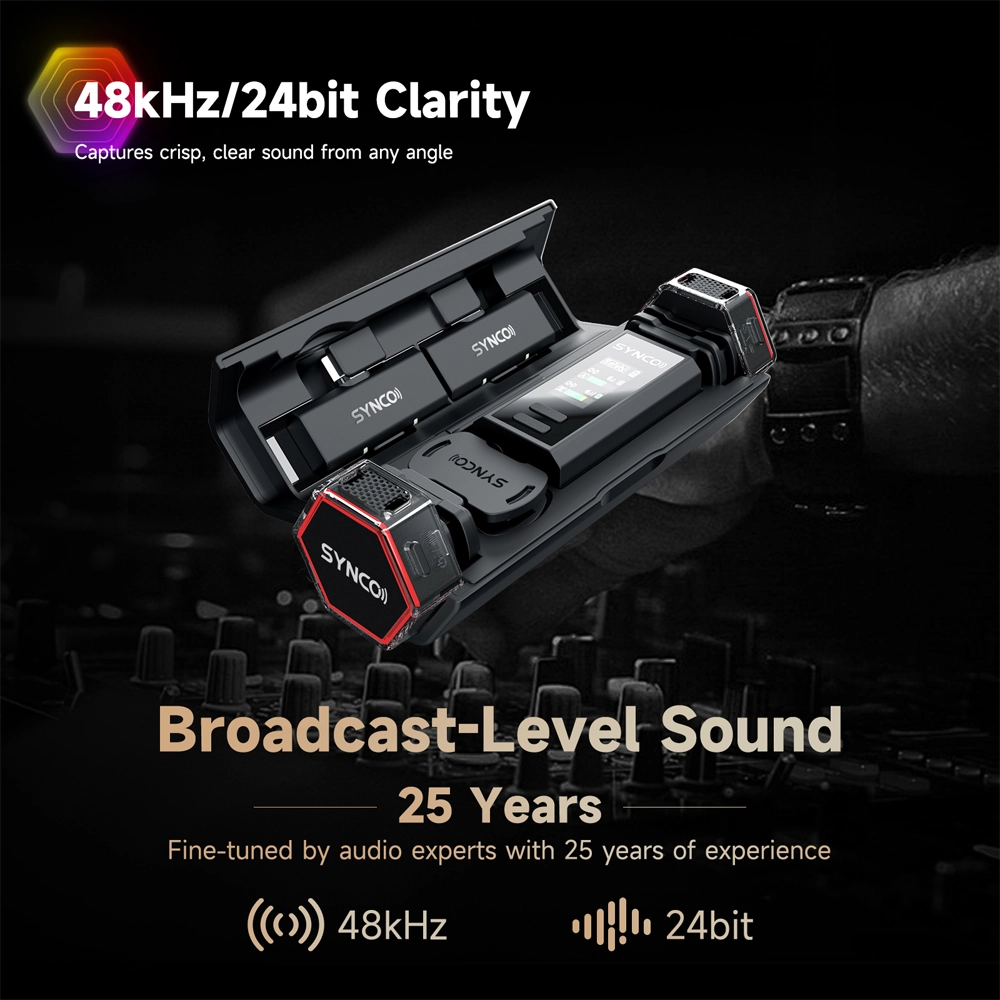 SYNCO G4, hepsi bir arada kompakt yapısı, üstün ses kalitesi, geniş uyumluluğu ve uzun pil ömrü ile podcast yayıncılarından canlı yayıncılara, röportajcılardan mobil içerik üreticilerine kadar herkesin ihtiyacını karşılayacak profesyonel bir kablosuz mikrofon çözümüdür.