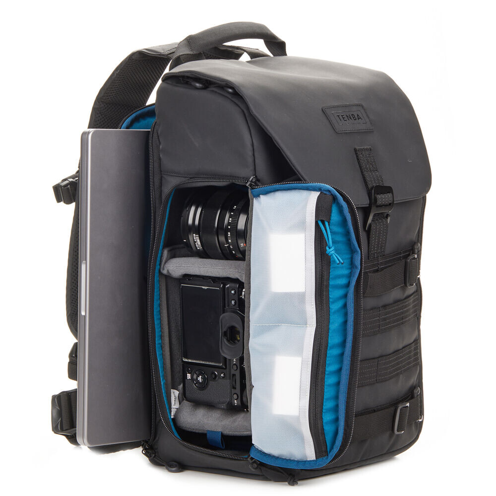 Üst kapağın altında, daha fazla kamera ekipmanı, drone kiti, yiyecek veya yağmurluk için kullanabileceğiniz dönüştürülebilir bir sırt çantası bölümü vardır. Dış MOLLE ağ, genişleyebilir özelliğe sahiptir. Tenba Tools Lens Kapsülleri, Pil Torbaları ve Hafıza Kartı Cüzdanlarının yanı sıra çeşitli torbalar ve aksesuarlar taşımaya uygundur.