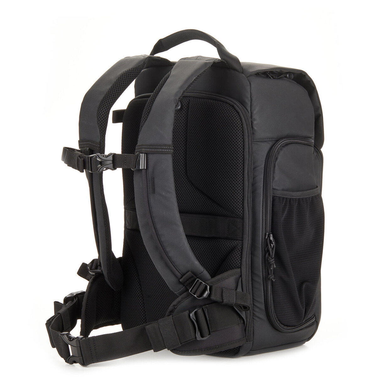 Tenba'nın Hava Akımı donanımı ve otomatik ayarlı Pivot-Fit Askıları, çantanın çeşitli boyutlardaki kullanıcılara rahatça uymasını sağlar.