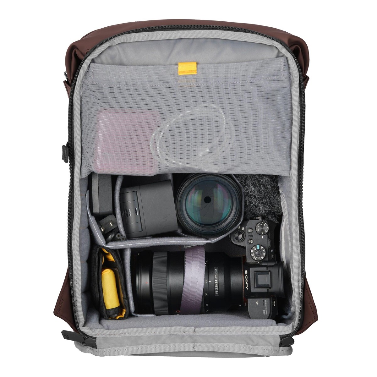 Üst bölümdeki günlük kullanım bölmesi (275mm genişlik x 140mm derinlik x 210mm yükseklik), günlük eşyalarınızı veya ek kamera ekipmanlarını taşımak için idealdir. Aynı zamanda açılarak çantanın tamamına üstten erişim sağlar.