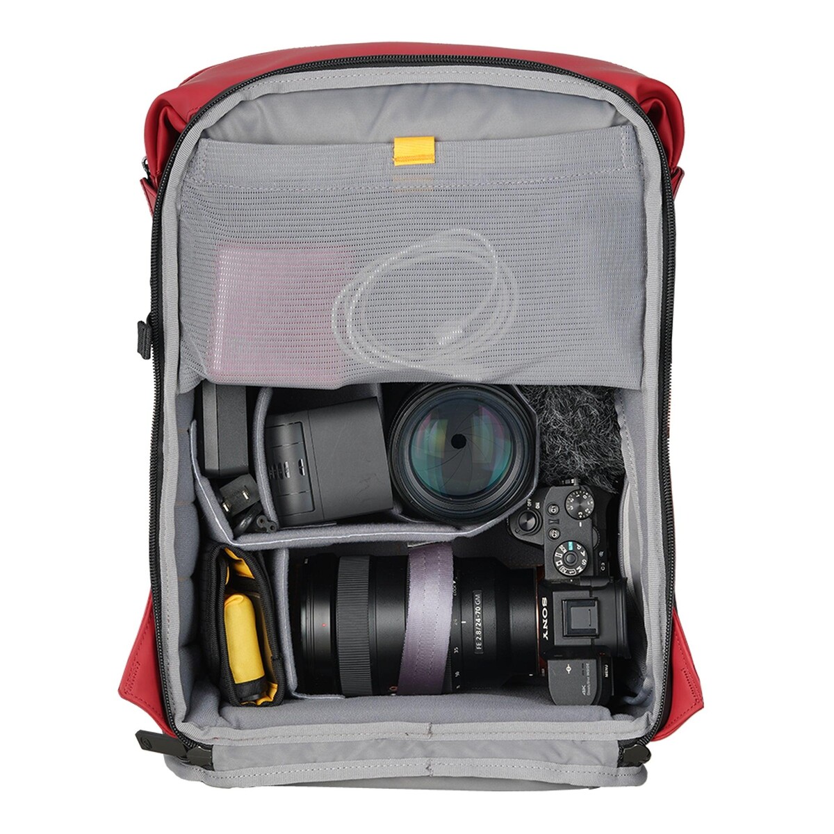 Kamera bölmesine (275mm genişlik x 140mm derinlik x 190mm yükseklik) tam erişim çantanın arka kısmından sağlanır ve full frame bir kamera ile 2-3 lens ve aksesuarları taşımak üzere tasarlanmıştır. Ayrıca ekstra geniş yan erişim sayesinde kameranızı hızlıca çıkarabilir, anlık kareleri kaçırmazsınız.