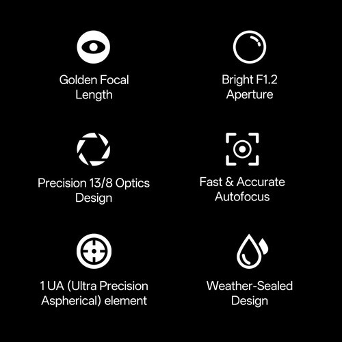 f/1.2 maksimum diyafram açıklığı, öznelerinizi arka plandan ayırarak etkileyici bir bokeh sağlar ve portrelerde derinlik katar. Lensin optik tasarımı, keskin ve detaylı görüntüler sunar.