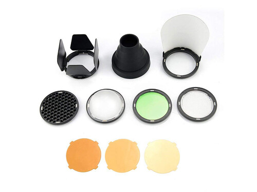H200R / V1 için Manyetik şekillendirici kiti, yuvarlak kafa flaşların özelliklerini en üst düzeye çıkaran manyetik şekillendiricileri içerir. Kit, ışık dağılım alanını daraltmak ve konunuzu seçerek aydınlatmak için bir huni (snoot) , 4'lü kapakçık (barndoor) ve bir petek (grid) içerir. Işık dağılım alanını genişletmek için de 180 dereceye yakın bir kubbe difüzör (dome diffuser), Plaka difüzör (wide diffuser plate) ve dağılımı endirekt yaymak için sektirme kartı (bounce card) bulunur. Son olarak ışık sıcaklığını değiştirmek için üç amber CT filtresi ve bir yeşil floresan filtresi dahildir.Kutu İçeriği