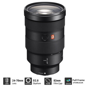 Ürün ÖzellikleriBayonet:Sony E(APS-C),Sony FE(Full Frame)Lens Tip:ZoomLens Odak (mm):24-70mmDiyafram:f/2.8Filtre Çapı:82mm -